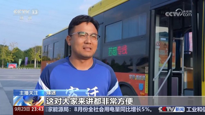 “公交车可以直达我们赛场的周边,这对大家来讲都非常的方便。再一个来讲,我们公交车上有很多都是我们本地的球迷,这样可以一起为我们宿迁队加油。这比我们自己开车有意思多了。”球迷王海东表示。