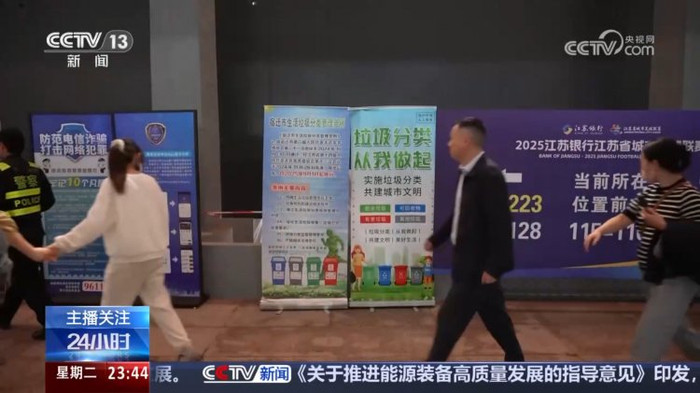 9月23日,中央广播电视总台《24小时》栏目关注我市在举办“苏超”等体育赛事中的绿色创新实践,“人走场净”让绿色低碳理念落地见效。