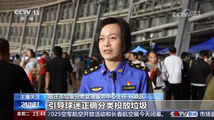 “我局联联合体育馆运营管理方,在球场的出入口设置了160个分类垃圾桶,我们还通过场内的大屏、横幅标语、志愿者宣传等形式,引导球迷正确分类投放垃圾。在比赛结束1小时后,场内的垃圾能够清运完毕,实现人走场净。”宿迁市垃圾分类管理服务中心主任柯晓庆说。